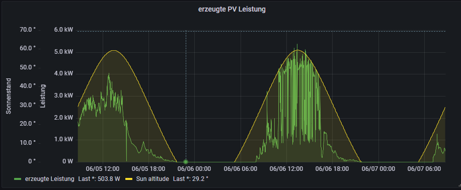 OK, danke, verstehe ich aber noch nicht, wie ich die zweite Datenquelle einbinde. Ich kann für ein Panel entweder "Solaranzeige" oder "Sun and Moon" auswählen aber nicht einen Grafen aus Solaranzeige und einen aus Sun and Moon.