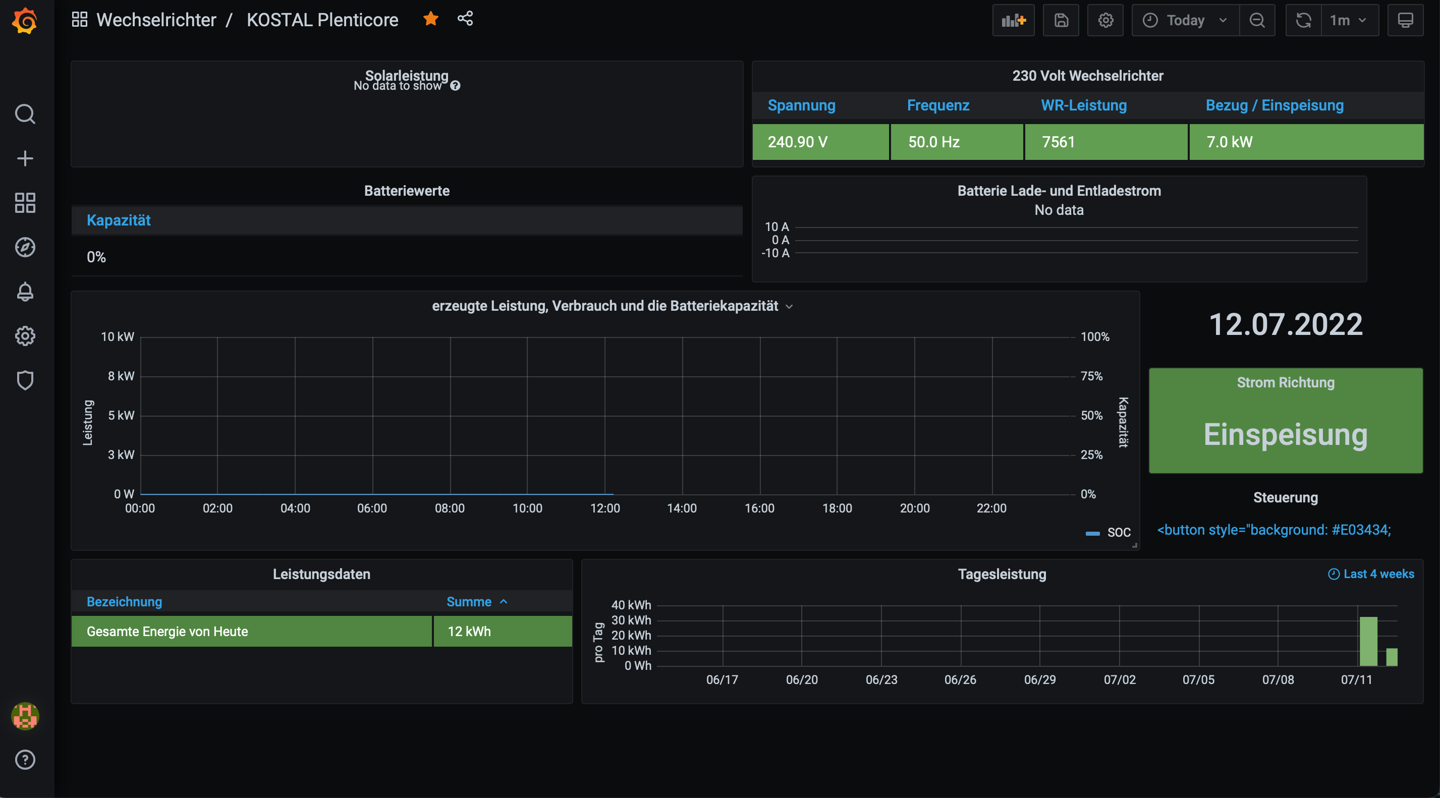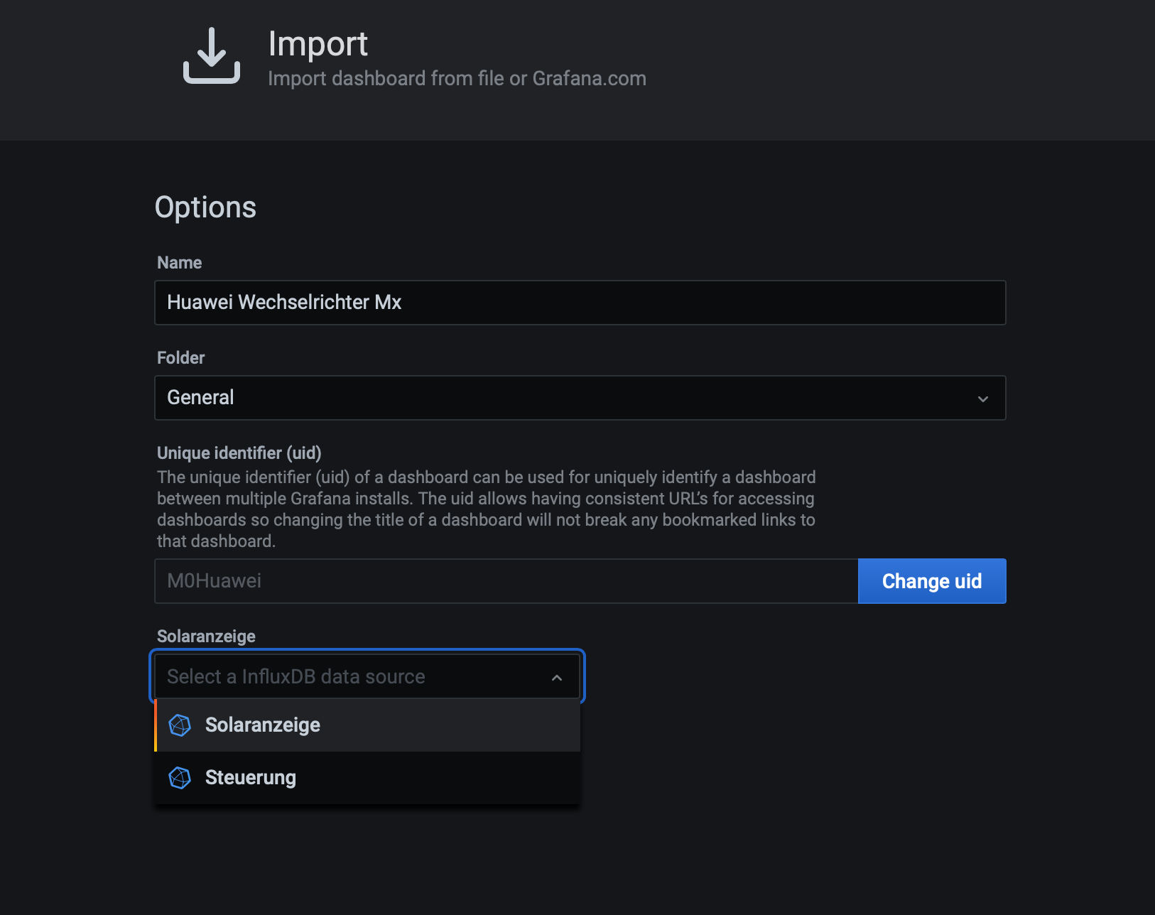 Trotzdem wird Grafana auf dem Dashboard Huawei Wevchselrichter MX nicht mit Daten gespeist. Woran kann es jetzt noch liegen?