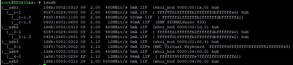Wenn ich nur lsusb eingebe folgendes: Das ist ja schon mal etwas geordneter.