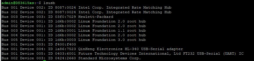 also ich vermute mal, dass der Treiber korrekt geladen wurde, denn das Device wird mir im Synology Infocenter angezeigt (wenn ich es abziehe, wird es nicht mehr angezeigt).