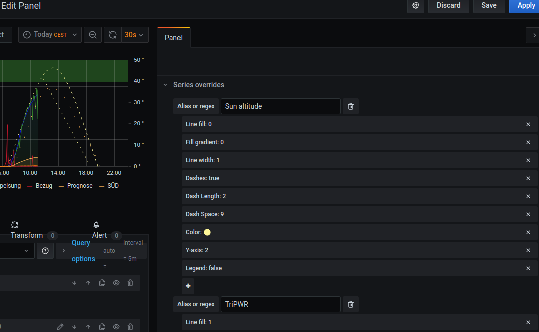 Add Query (C) angeklickt und " Meine Stadt " also Unna angeklickt und als datasource Sun altitude ausgewählt. Die Anzeige sieht dann so aus, was muss ich denn nachen um die gestrichelte Linie angezeigt zu bekommen ?