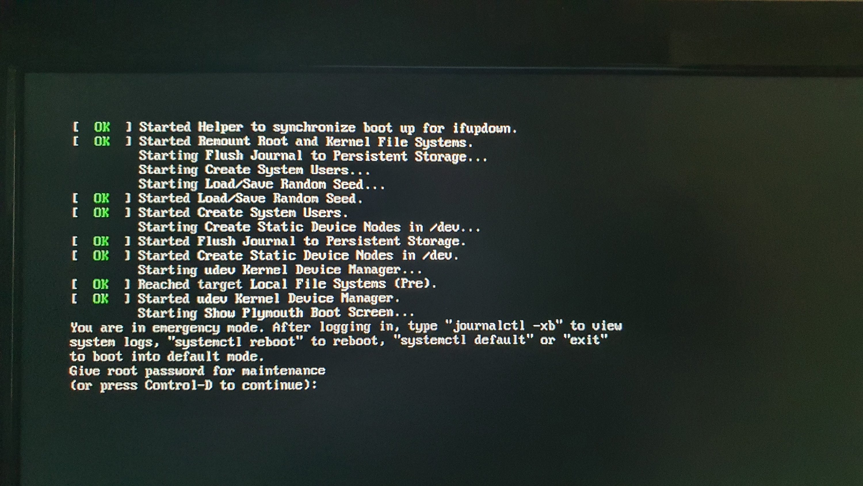 Nur beim Booten dauert es weiterhin ewig und ich bekomme die Fehlermeldung, und muss mit CTRL+D weiter machen.