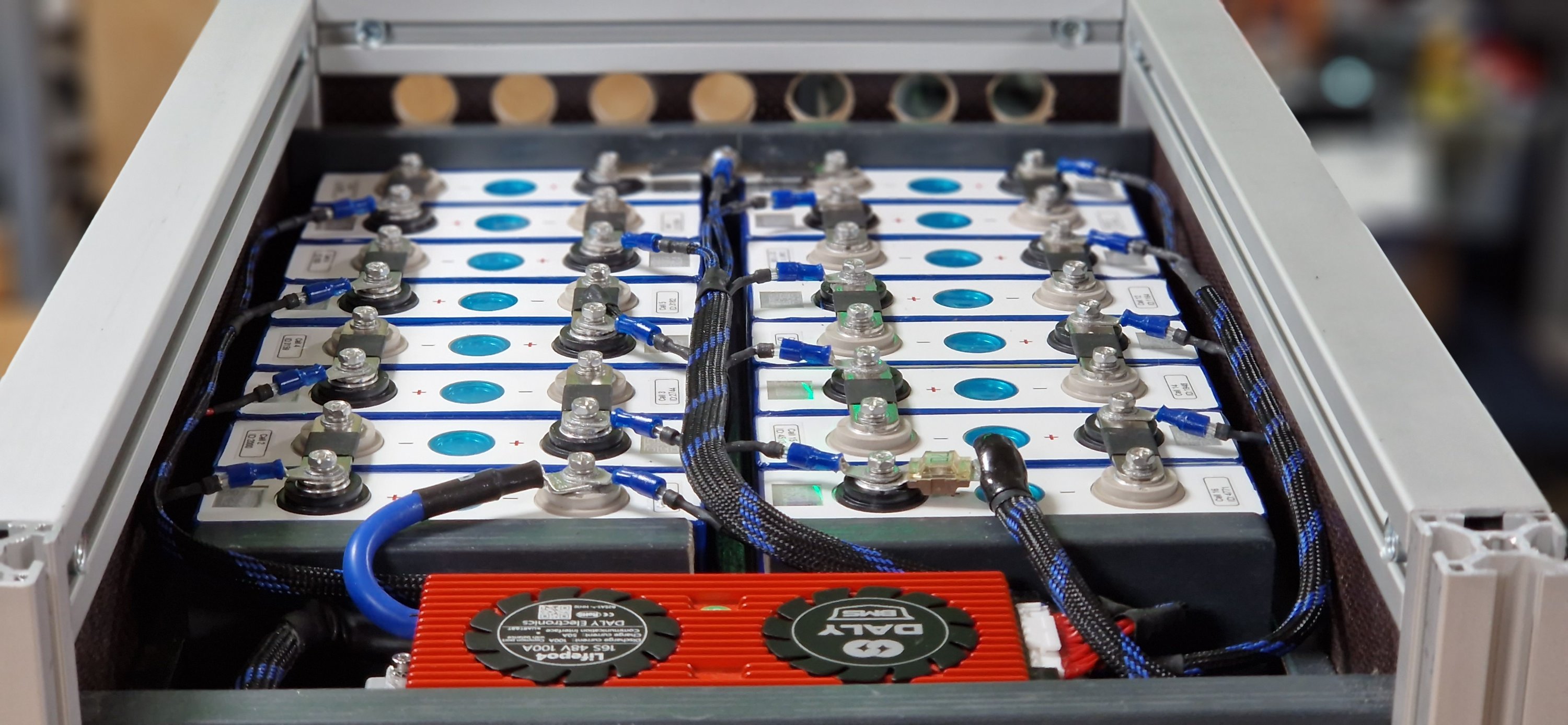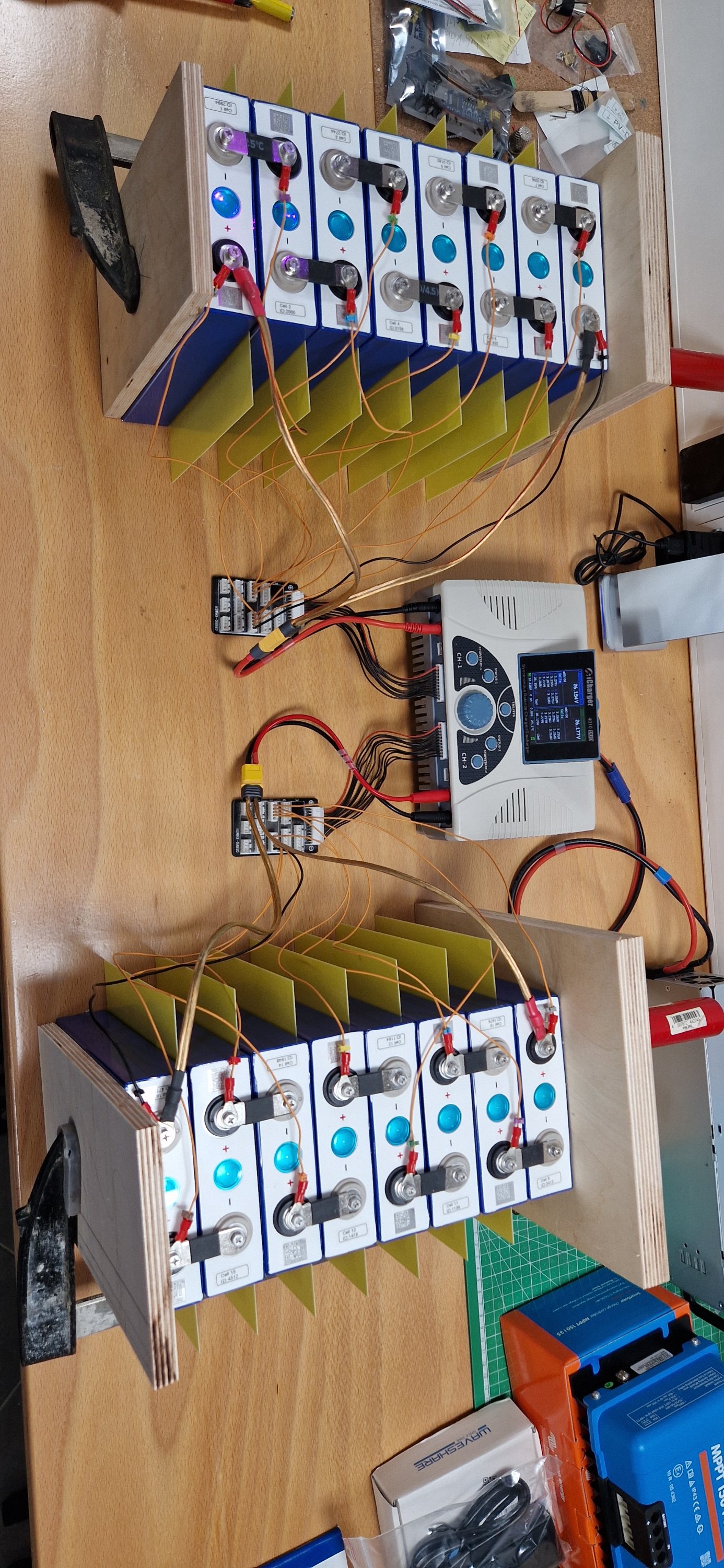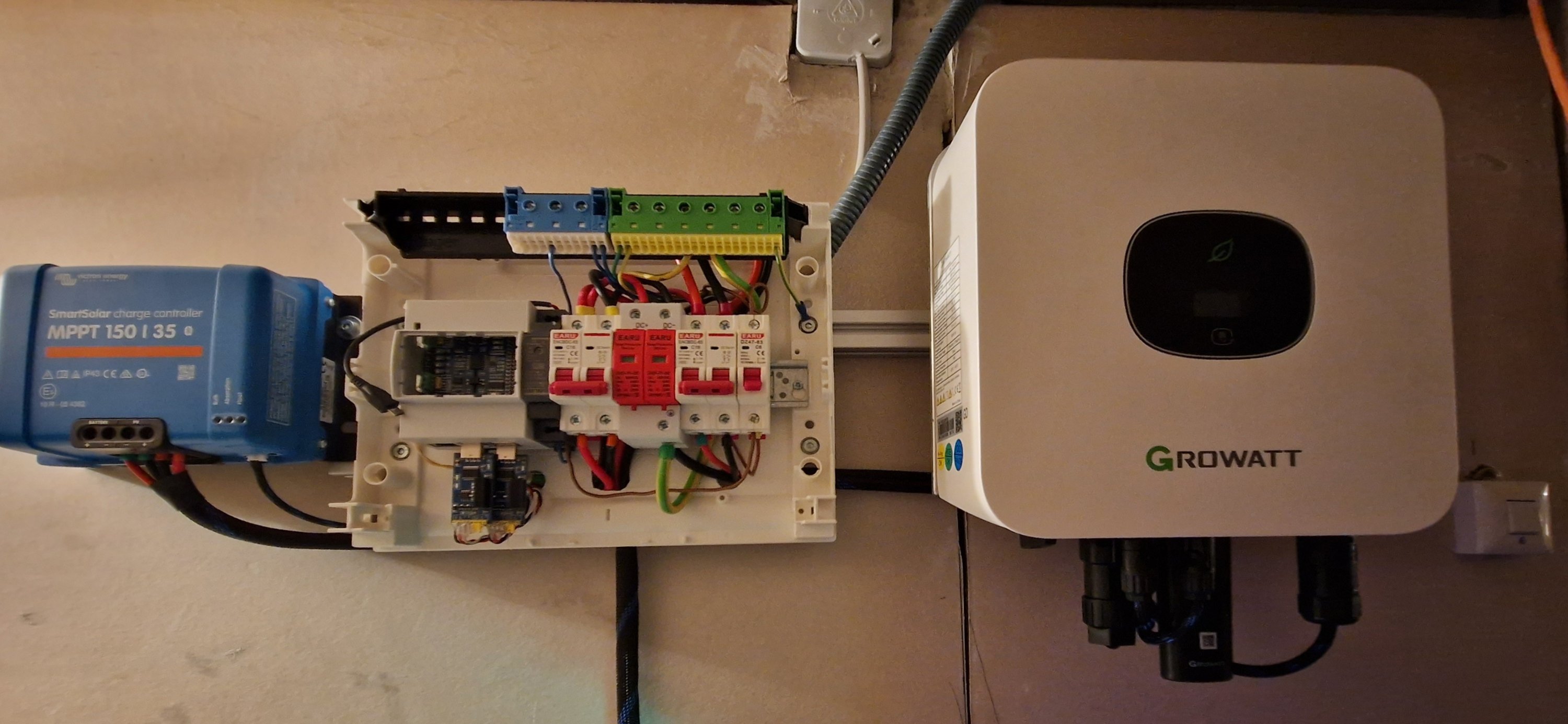 Neu hinzugekommen sind jetzt der Victron Laderegler 150/35 und ein Pylontech US2000C, also nur 15S-Zellen.