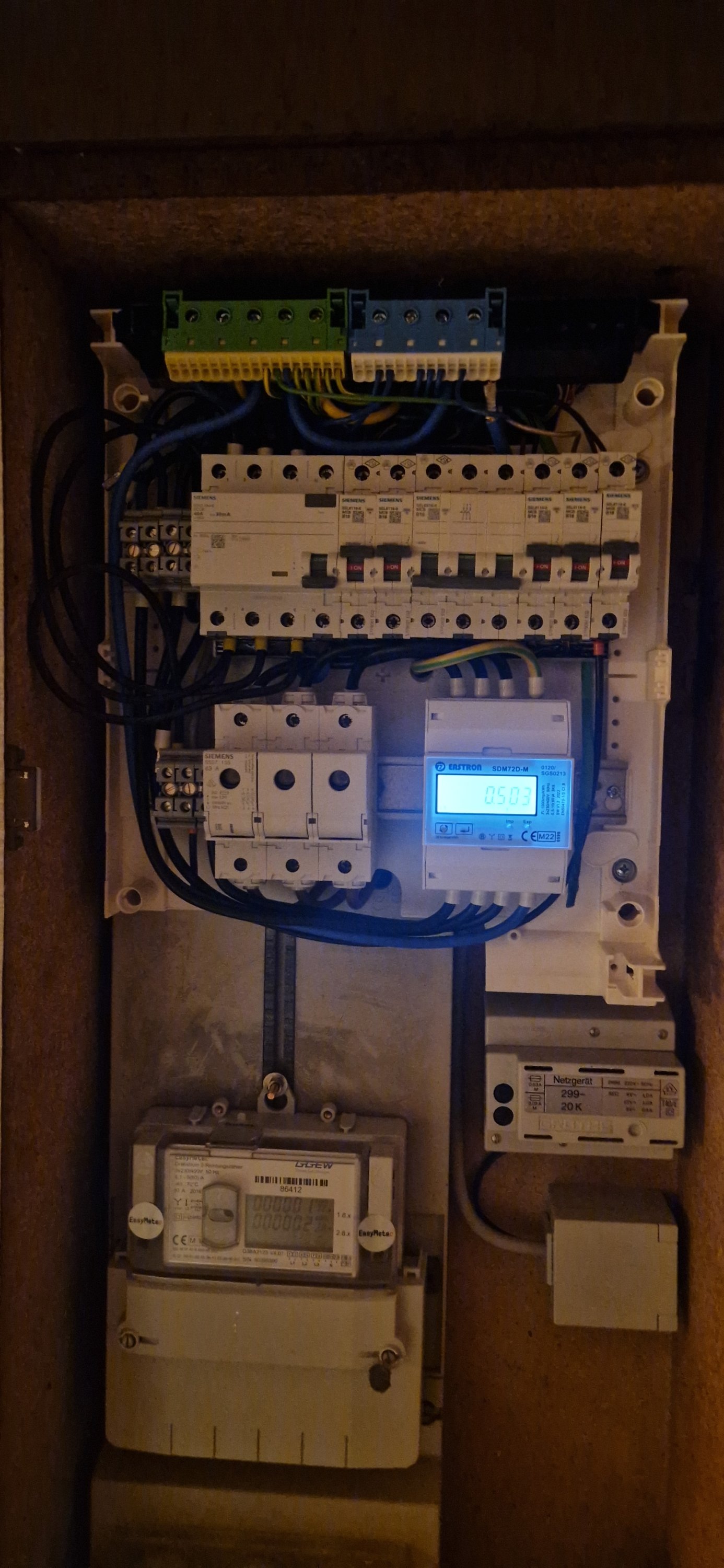 Es fehlen nur noch kleinere Teile, wie Splitkabel, Ethernet +RS485, die im gleichen Kabel durch das Haus gezogen wurden.