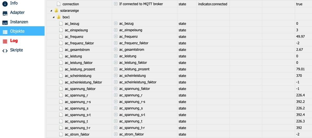 pi@solaranzeige:~ $ mosquitto_sub -h localhost -v -t "+/#"