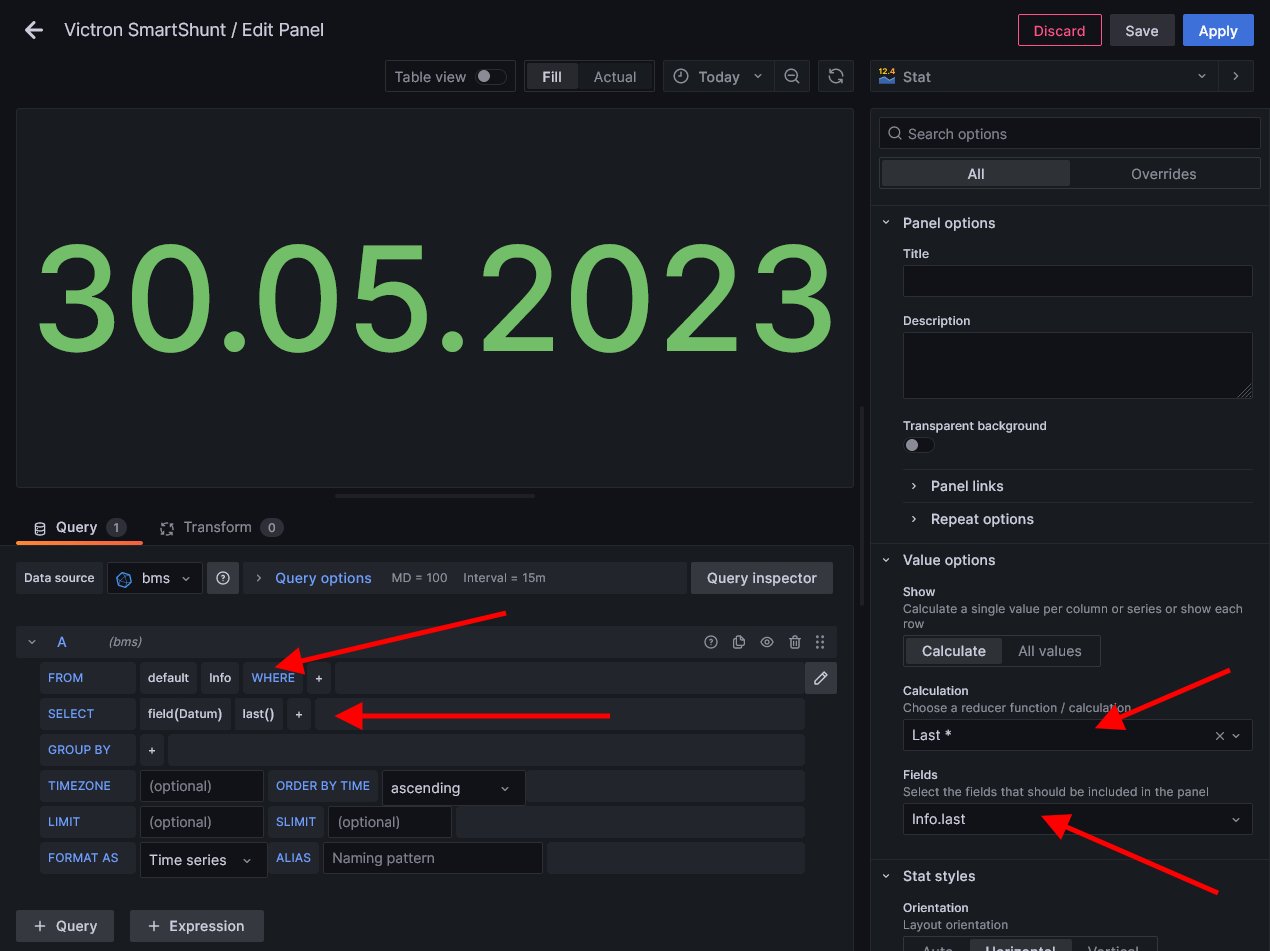 ich versuche mich gerade ebenfalls an der Darstellung mittels Solaranzeige. Ich habe es geschafft die Daten meines Kostal Plenticore 10 zu virsualisieren. Allerdings wird auch bei das Datum nicht angezeigt. Ich bekomme eine N/A. Was muss ich hier einstellen, um das korrekte Datum zu sehen?