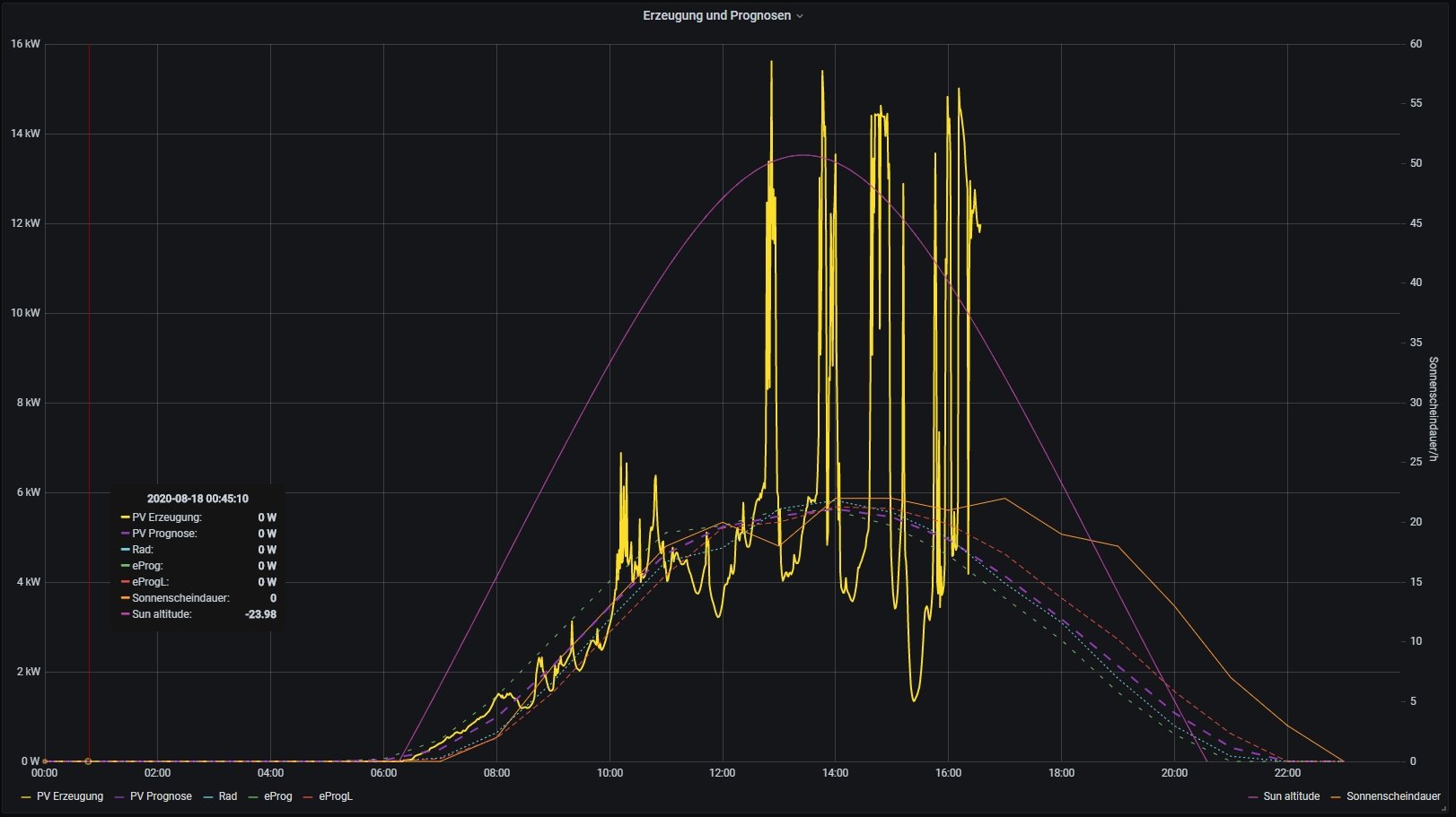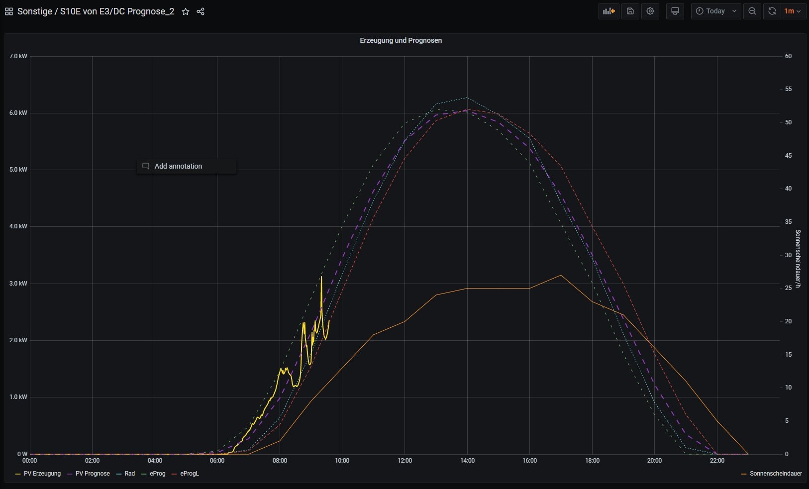 "Allerdings stellt Grafana alle Werte einer Stunde immer am Anfang dar. D.h. der Wert für die Stunde von 6:00 bis 7:00 steht schon um 6:00 in der Grafik" --> Ja, das habe ich auch so verstanden. Bezogen auf die Prognosen passt die Differenz.