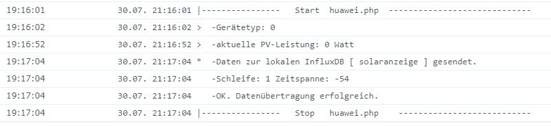 Ich vermute fast, dass ich den RS485-USB Stick noch nicht korrekt auslese (daher PV-Leistung = 0 Watt) und ich aber auch ein Problem habe, die (falsch) ermittelten Daten in die DB zu schreiben.