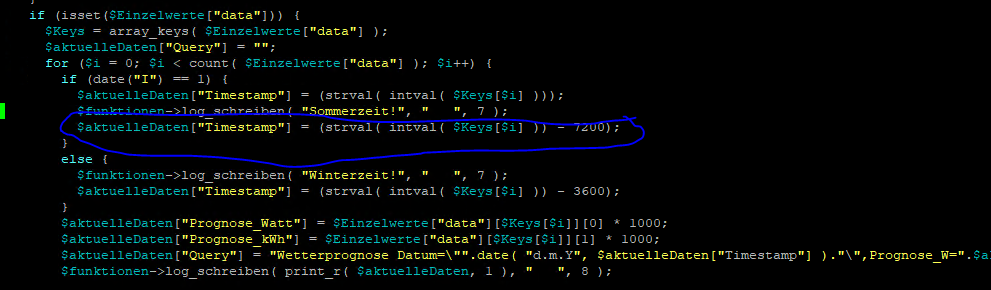 ich habe heute Morgen die Wetter.php angepasst da ich in Grafana eine zweistündige Verzögerung hatte bei der Darstellung der Prognose..