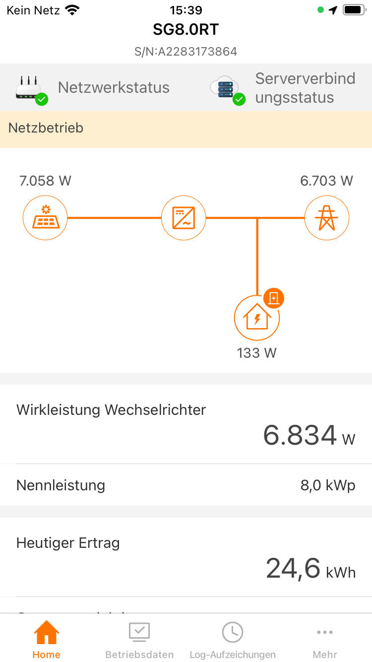 Ansonsten habe ich die neue Firmware des WiNET aufgespielt. Jetzt ist zumindest der Smart Meter immer grün in der APP. Daten in der iSolarCloud z. B für eigenverbrauch poppen immer nur ganz kurz wenn ich den dongle mal abgezogen habe - dann wieder nichts.