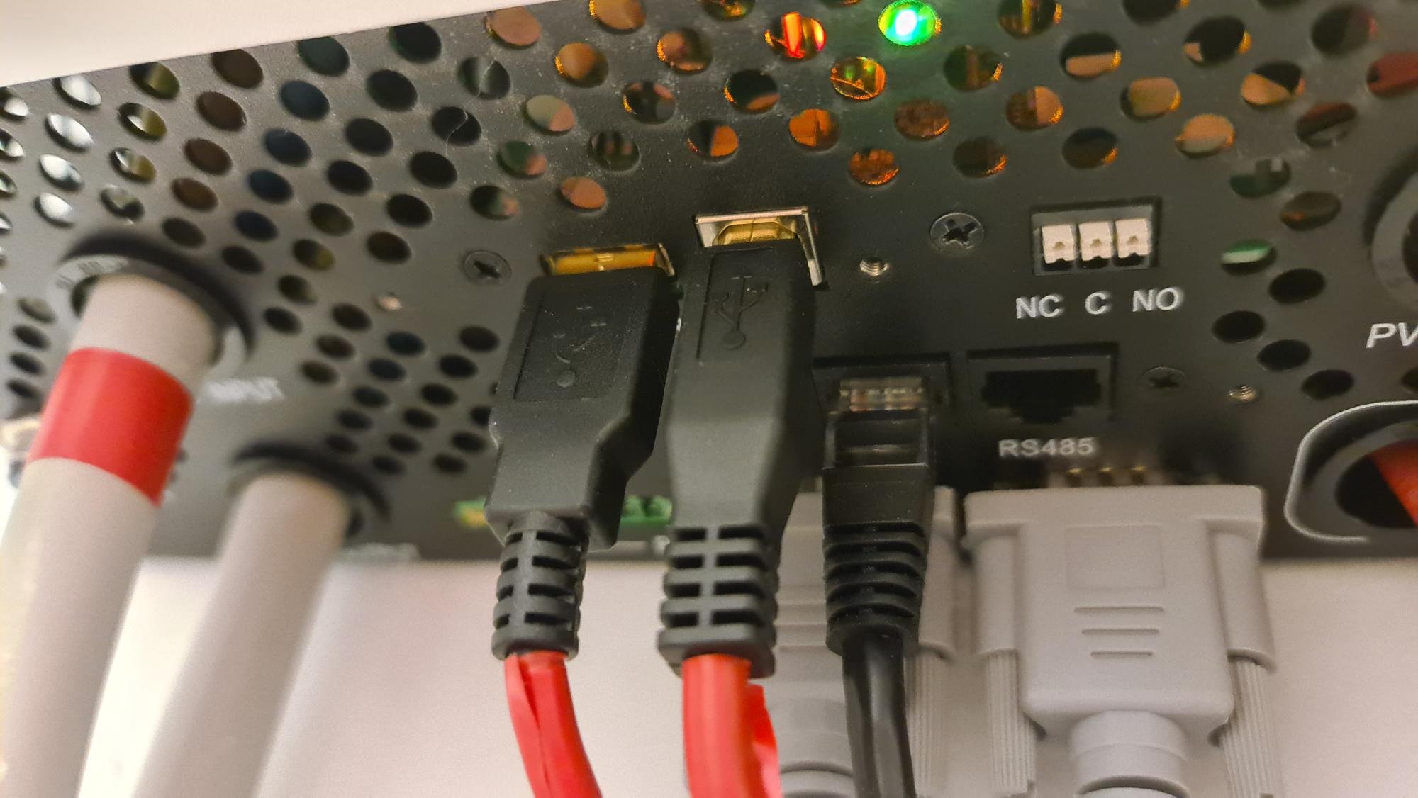 Die USB-Verbindungen sind von jedem Wechselrichter (also 3x) direkt zum Raspi geführt.