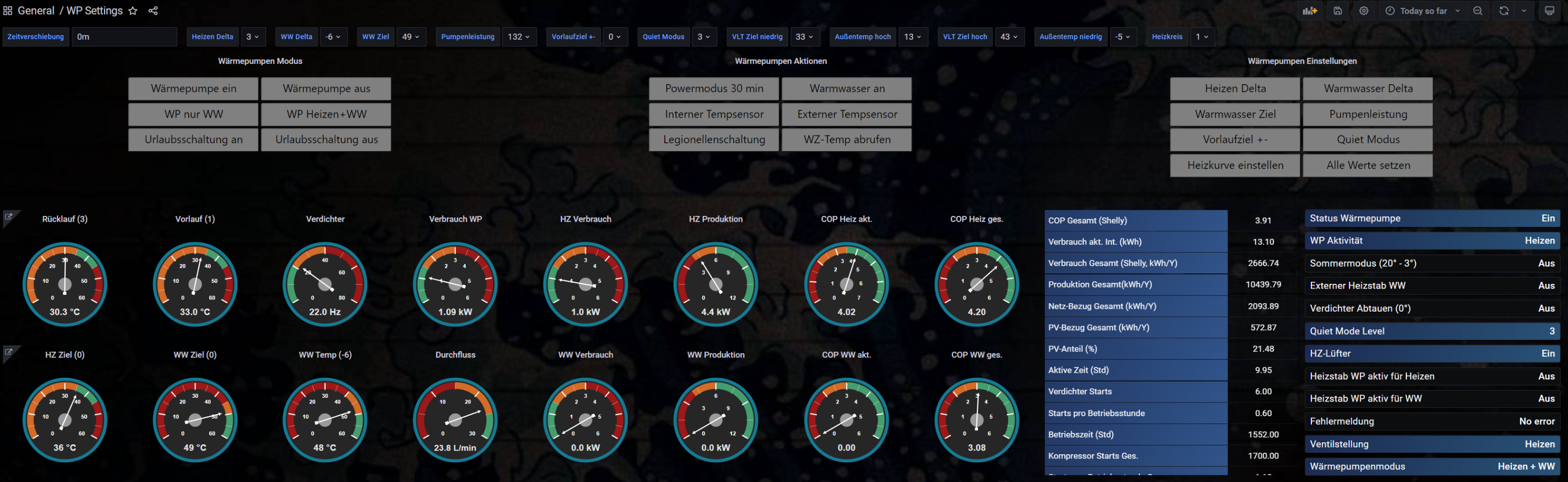 Man kann auch mit Grafana eine interaktive Steuerung über Heishamon für die Panasonic WP aufbauen: