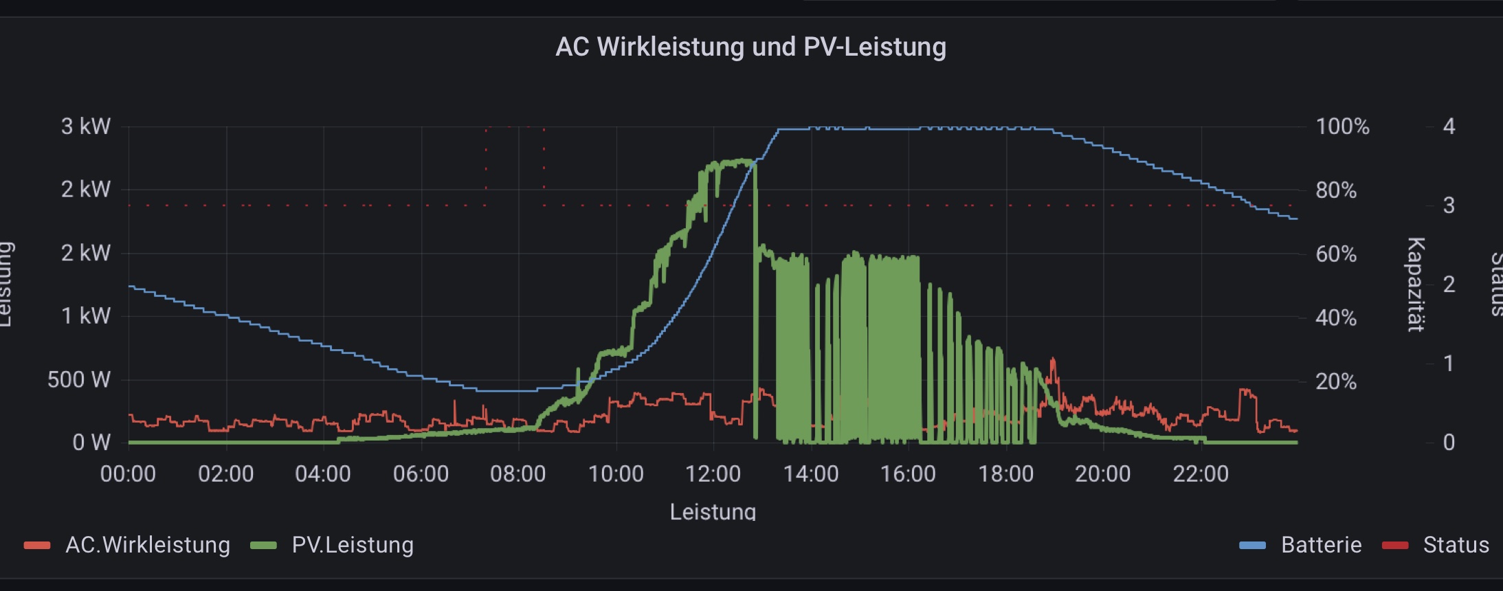 Ich habe mal eine Frage zum Ladeverhalten. Seit der Nutzung der LicomBox, hat sich das Verhalten bei vollem Akku geändert. Nachdem 100% erreicht wurden, schaltet der WR auf Entnahme um, entlädt den Akku auf 99% um ihn dann wieder zu laden. Auf dem Bild ab ca. 13:00 Uhr.