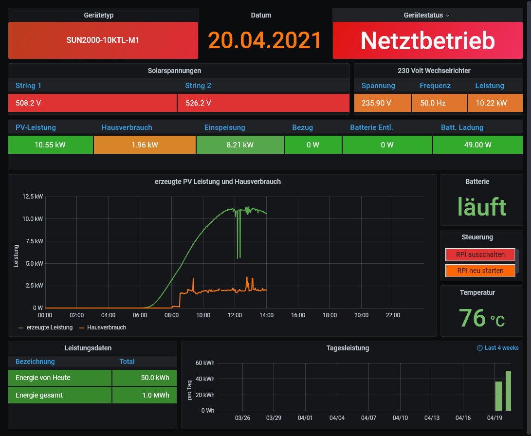 Ich versuche im Moment meinen Huwei Sun2000 10-KTL mit Solaranzeige zum laufen zu bringen.