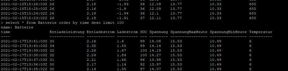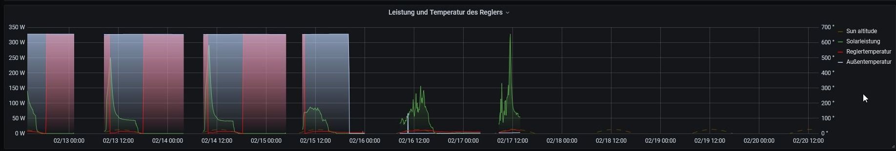 nach einiger Zeit musste ich doch mal wieder den Raspi anschauen. Mir war aufgefallen, daß sowohl der interne als auch der externe Temperatursensor des Epever keine "vernünftigen" Temperatur Angaben mehr liefert, wenn die Temperaturen unter 0°C fallen. Ist dem so?