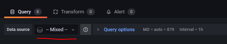 Beide Abfragen müssen in ein gemeinsames Panel. Sollten die Werte in 2 verschiedenen Datenbanken liegen, so ist unter Edit Panel die Auswahl Data Source "Mixed" zu wählen und dann für jede Abfrage die entsprechende Datenbank über dem Select: