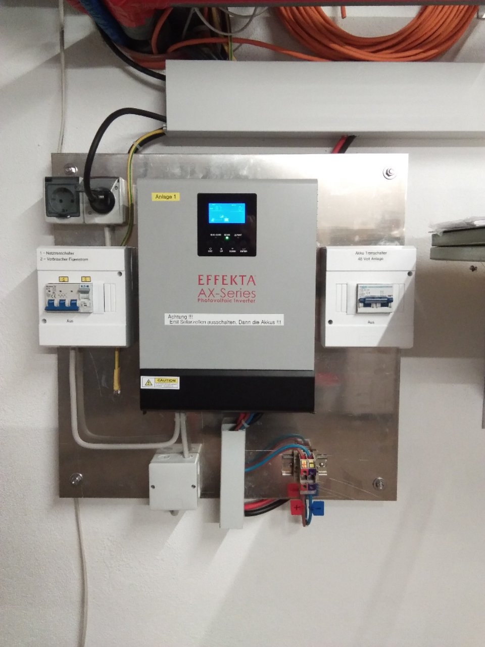 - ein Effekta Wechselrichter 48/3000 mit 4 Akkus 12V 120 Ah zu 48 Volt gebrückt.