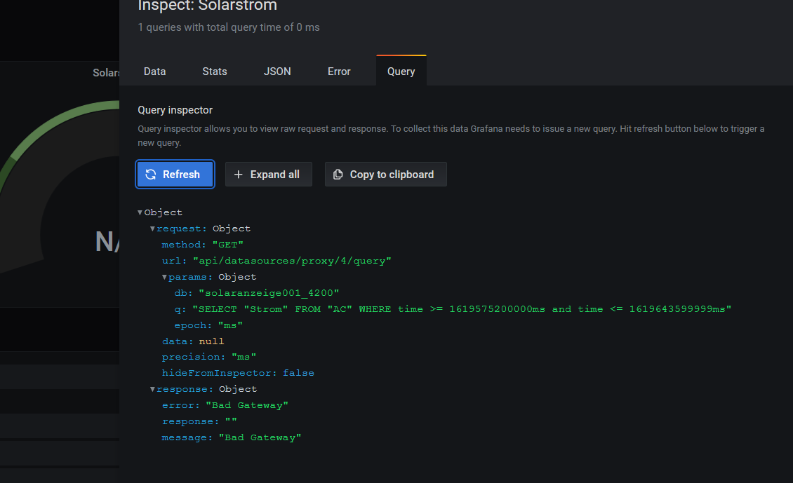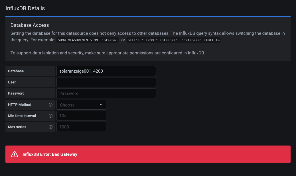 Re: Grafana Datenbank Fehler: Bad Gateway