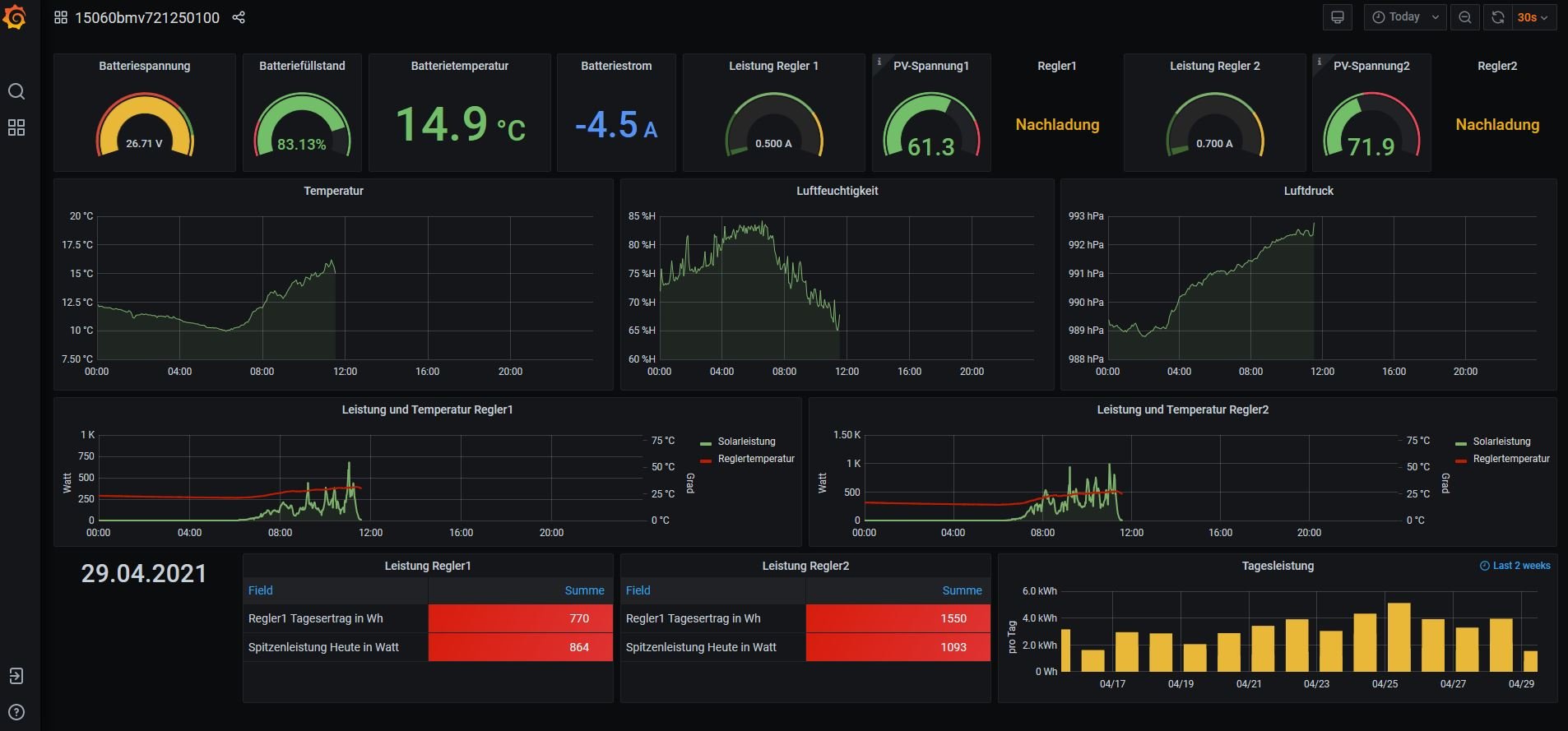 Hier ein Screenshot meiner Datenanzeige. Solarstrom kommt gerade nicht rein, weil es gewittert.