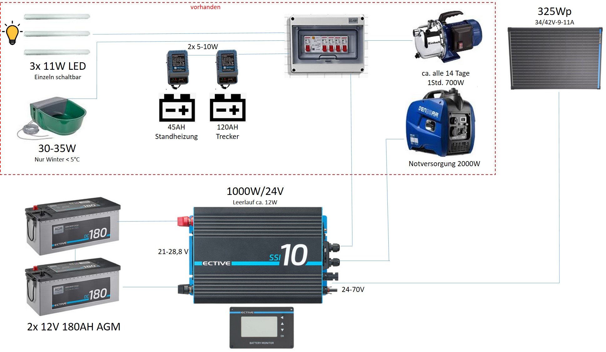 mein nächstes Projekt steht an....wir mussten mit unseren Pferden umziehen und haben am neuen Standort leider keine 230V mehr :cry: