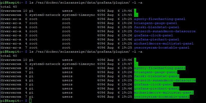 Alle manuell geladenen Plugins scheinen nicht mehr OK zu sein und auch meine angepasste grafana.ini scheint irgendwie immer wieder auf die Standard-Datei zurückgesetzt zu werden.