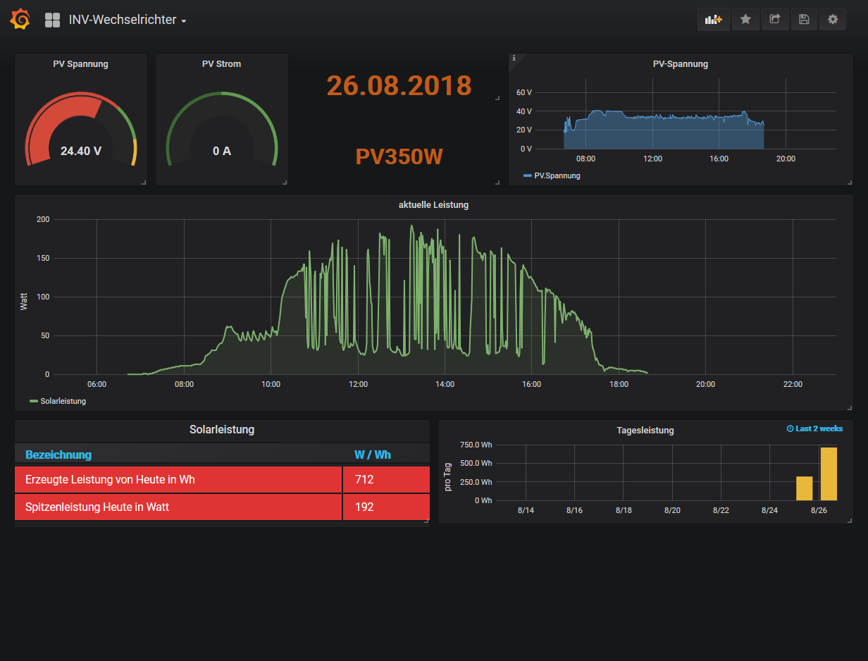 So sieht das Standard Dashboard darin aus: