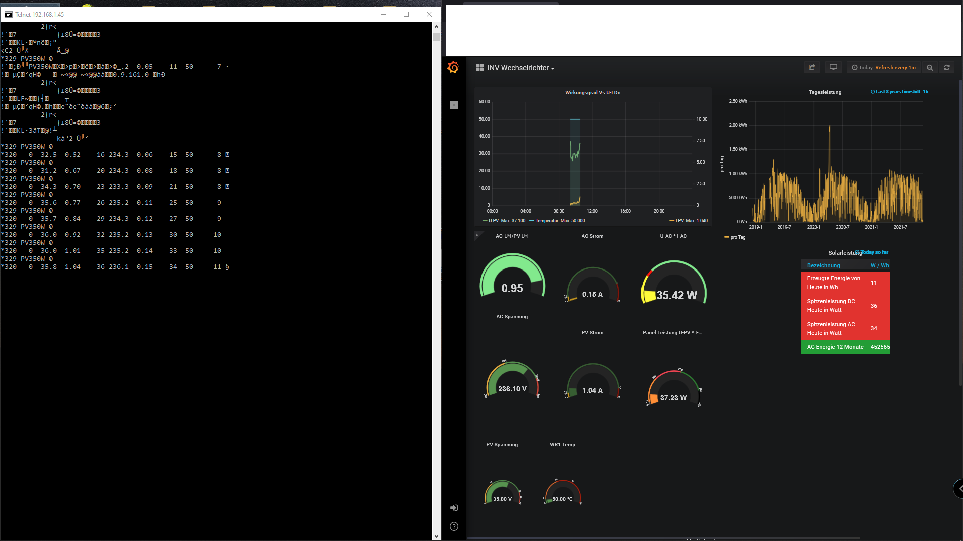 Mit der alten Solaranzeige geht alles wie gewohnt (mit einem Wechselrichter), die neue Version scheint überhaupt keine Daten vom HF2211 auslesen zu können. (zwei INV350-60 RS485)