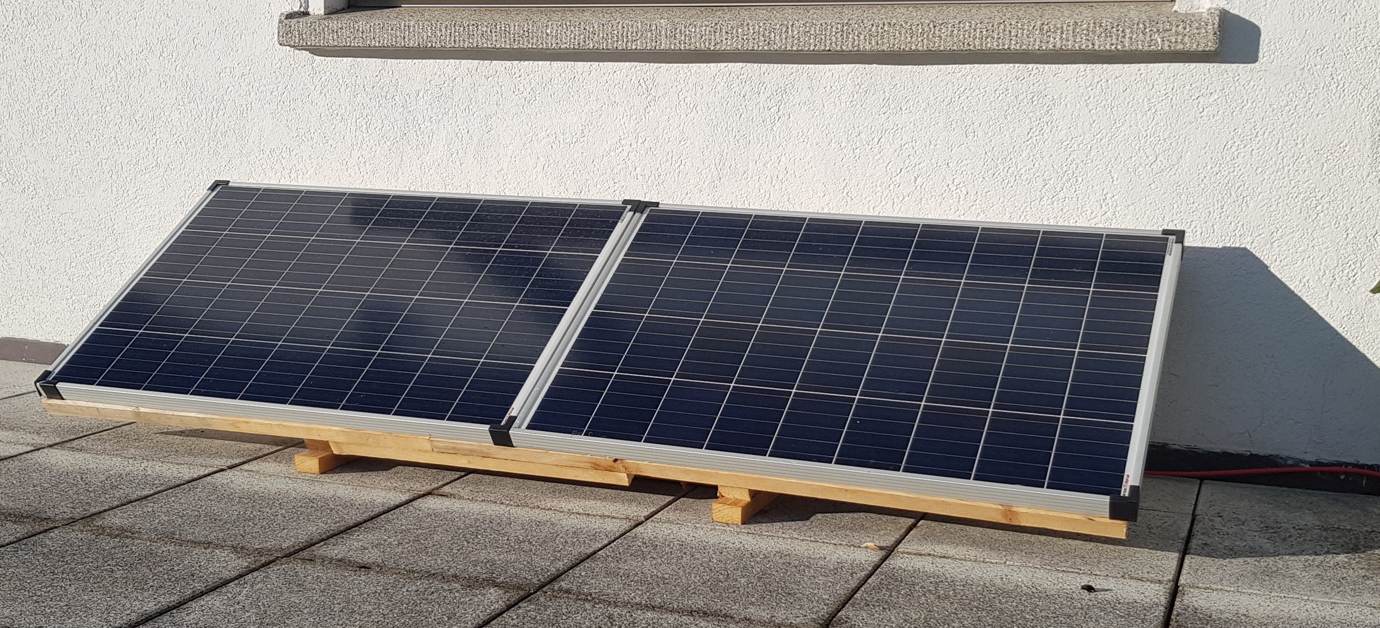 Verwenden werden momentan 2x 100Watt solarmodule (auf dem Dach sollen es 3-4 werden) momentan auf der Terrasse die nächsten Wochen komm die auf das Dach.
