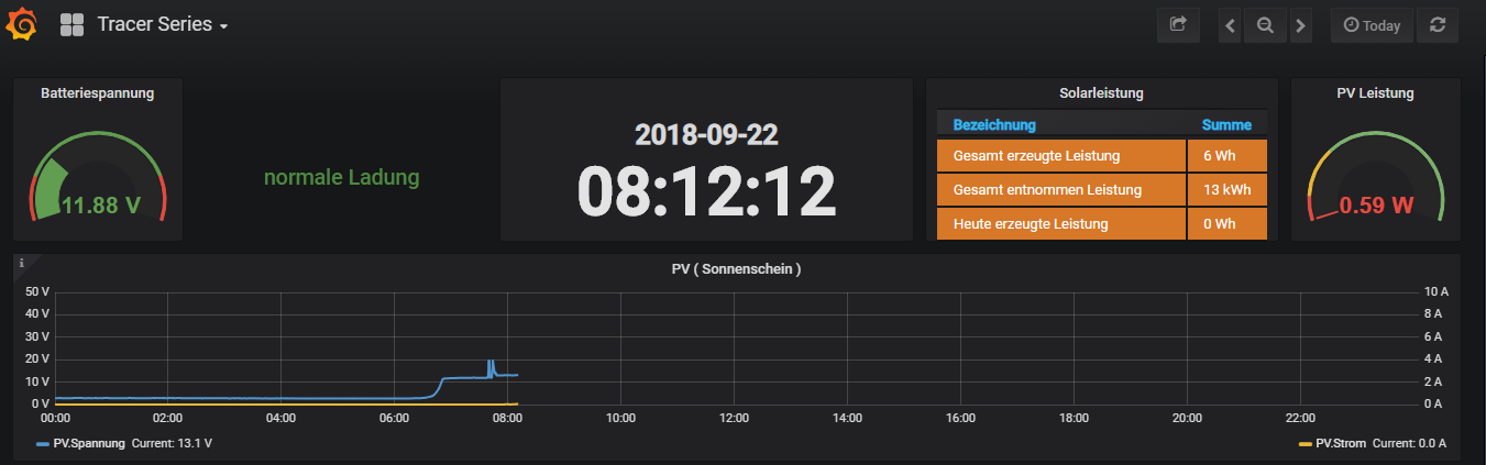 verwendet wird ein Regler Epever Tracert 30A mit eLOG01 box die zusätzlich die Daten in einer Datei speichert.