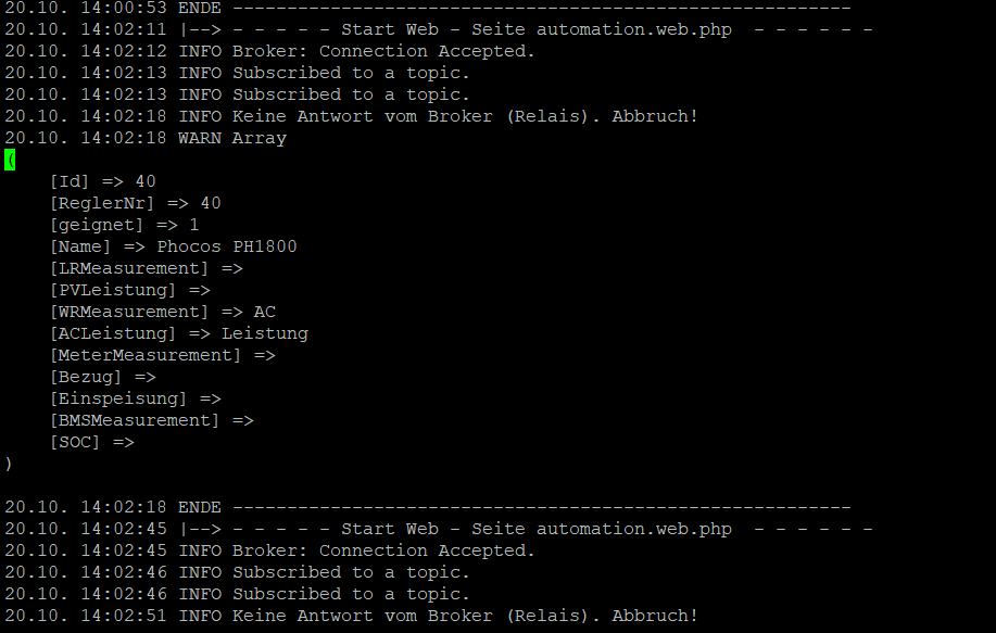 Wenn ich einen Regler oberhalb der 40 eingebe wird in der WEB-automation.log nichts angezeigt. Bis 40 werden mir die Regler angezeigt und ich kann die Automation nutzen. Leider brauche ich das Dalybms (Regler 57).