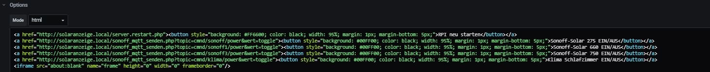 ich bin am Verzweifeln. Meine Solaranzeige läuft schon länger und ich konnte meine Sonoffs auch schon über die Schalttafeln in Grafana steuern, leider klappt dies seit einiger Zeit nicht mehr. Wenn ich die Schalttafel betätige bekomme ich immer folgende Fehlermeldung.