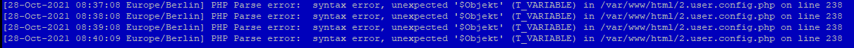 Da scheint in Deiner 2.user.config.php ein Fehler zu sein.