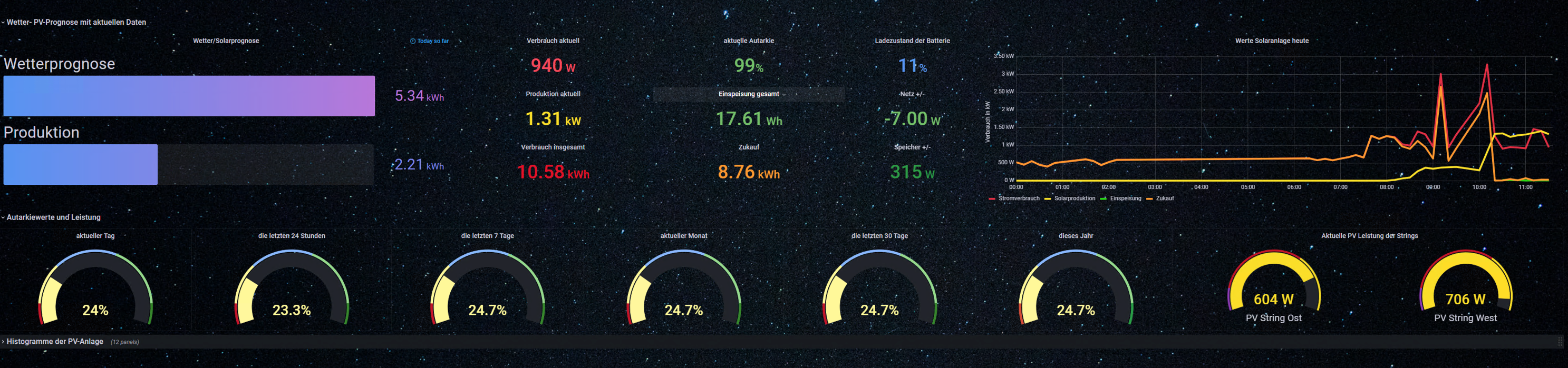 Aktuell habe ich nur E3DC Dashboards vorliegen, da ich selbst "nur" ein E3DC Hauskraftwerk besitze. Entsprechende Anpassungen an andere Systeme lassen sich aber per remote Session vornehmen.