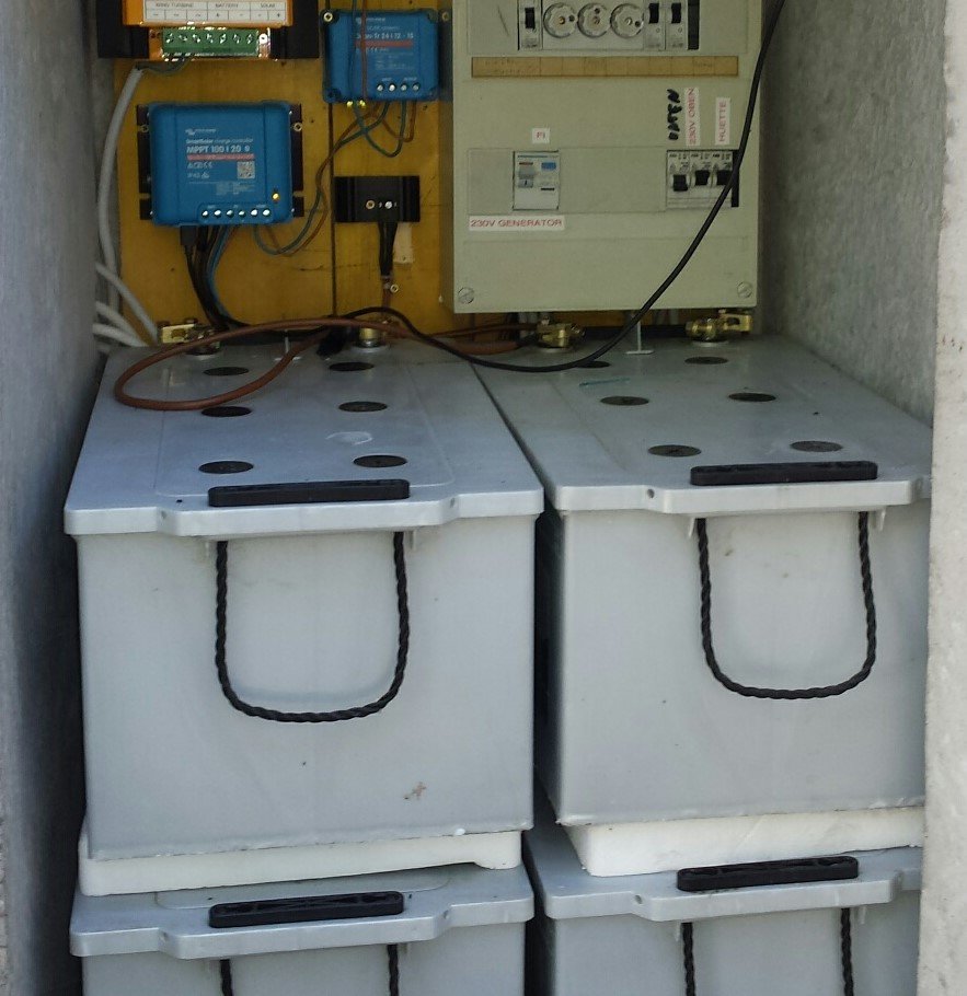 Da wir von Anfang an ein 24 V System hatten, da wir dachten man könnte das mit einem Windgenerator unterstützen (so ein Blödsinn),