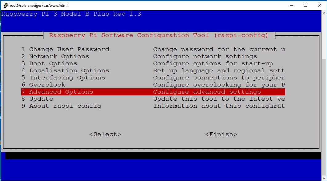 Bei mir fehlt in der raspi config die Nr.7 Advanced Options .