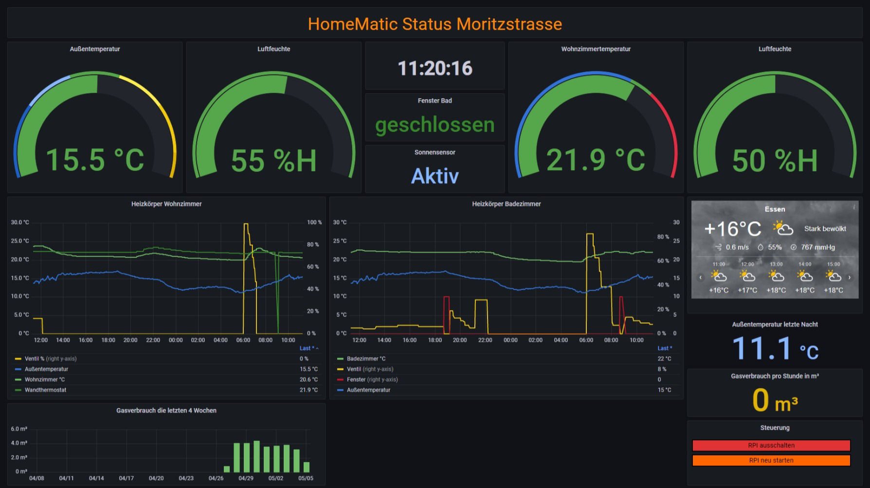 Ab der Image-Version 4.7.7 kann man angeschlossene Geräte, an der HomeMatic, grafisch darstellen. Gaszähler, Stromzähler, Heizungsthermostaten, Wandthermostaten, Lichtsensoren usw. Alles was wechselnde Daten liefert.