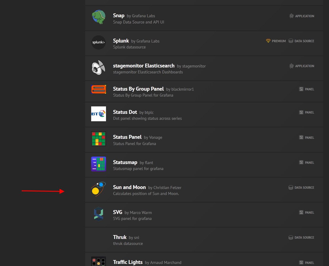 - Alle vorhandenen Plugin's werden alphabetisch aufgelistet. Ziemlich weit unten ist "Sun and Moon". Diesen Punkt auswählen.