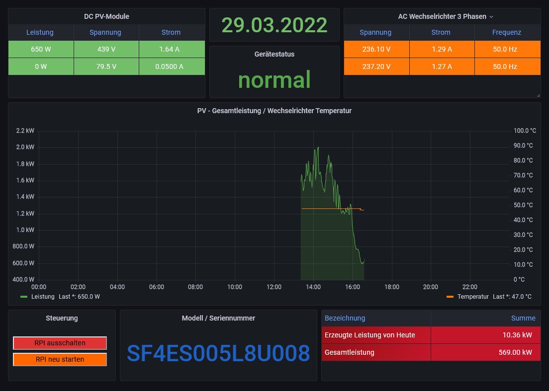 In der Image Version 4.7.7 werden die SofarSolar Wechselrichter implementiert sein. Wer vorab den Wechselrichter schon einmal auslesen will, einfach ein Update der Solaranzeige machen.