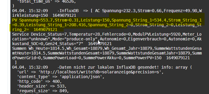 Fronius Symo / keine Stringwerte in DB obwohl ausgelesen wird
