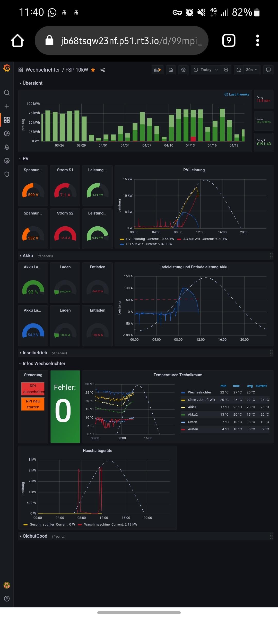 Am Handy gibt es auch eine App dazu die die Verbindung herstellt und Grafana dann über den Browser aufruft.