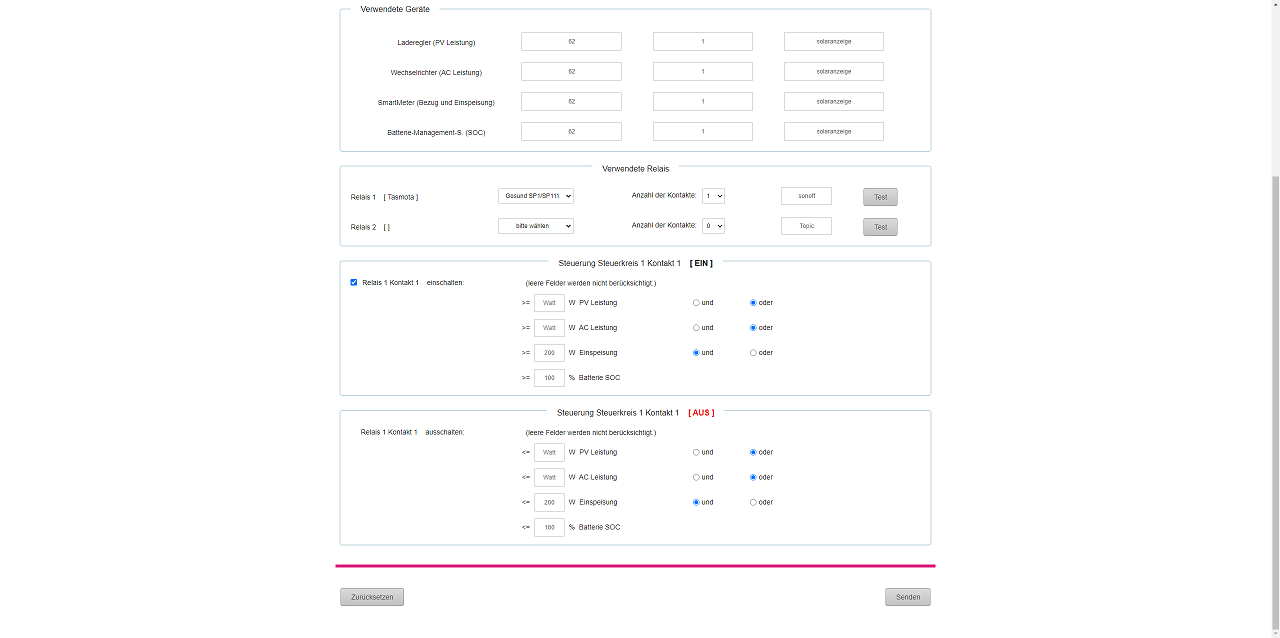 Überwachung der Solaranlage per eMail oder Pushover und Steuerung von Geräten mit Smart Home Zentralen. PV-Überschuss Steuerung verbunden mit Geräten und Tasmota Firmware. Wallbox Steuerungen und API Schnittstelle, über die Daten in die Solaranzeigen Datenbanken geschrieben und gelesen werden können. Alles, was man für Steuerungsaufgaben benötigt.