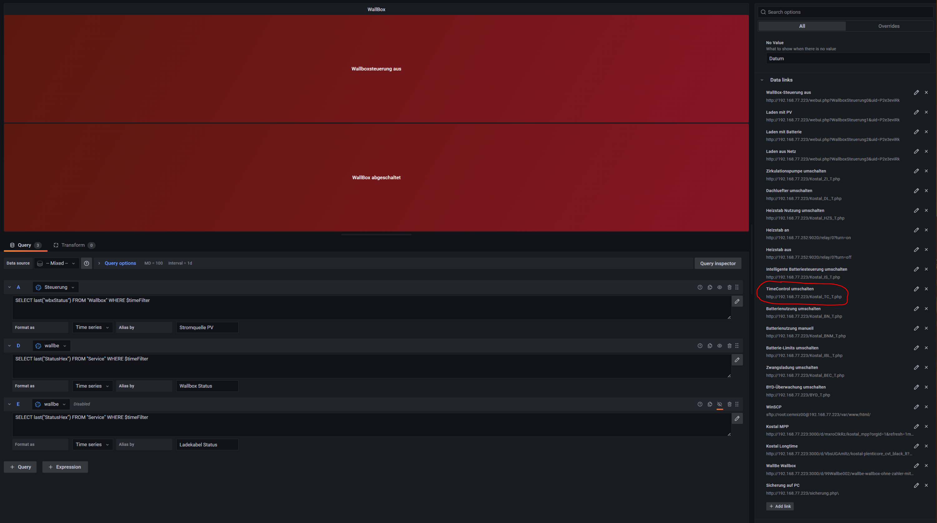 ich habe bei meiner Suche keine Anleitung gefunden, wie man aus Grafana heraus ein Python Skript Starten kann (um z.B. in meinem Fall die Time Control beim Batteriemanagement zu enablen/disablen).