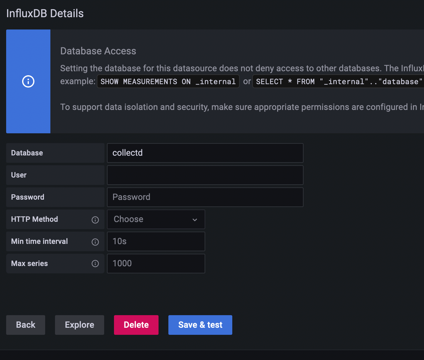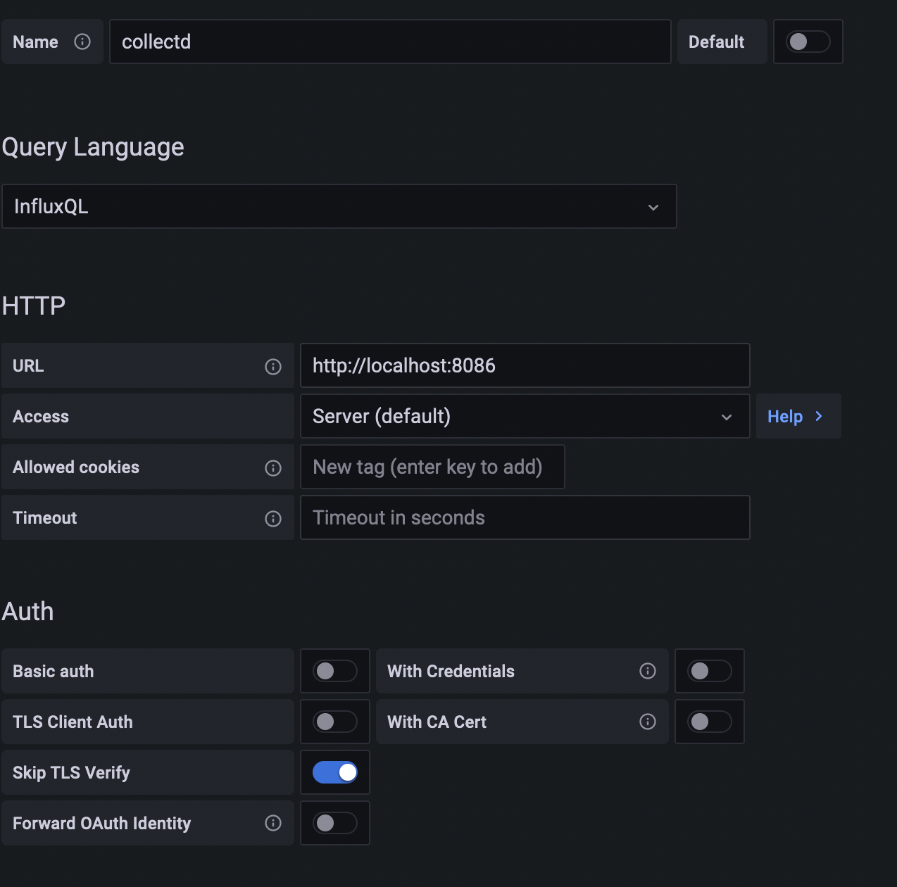 13. Danach im Grafana die neue Data Source hinzufügen. (Als Admin einloggen, Configuration, Data Sources)