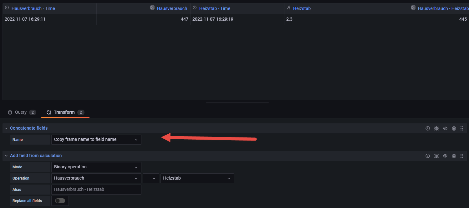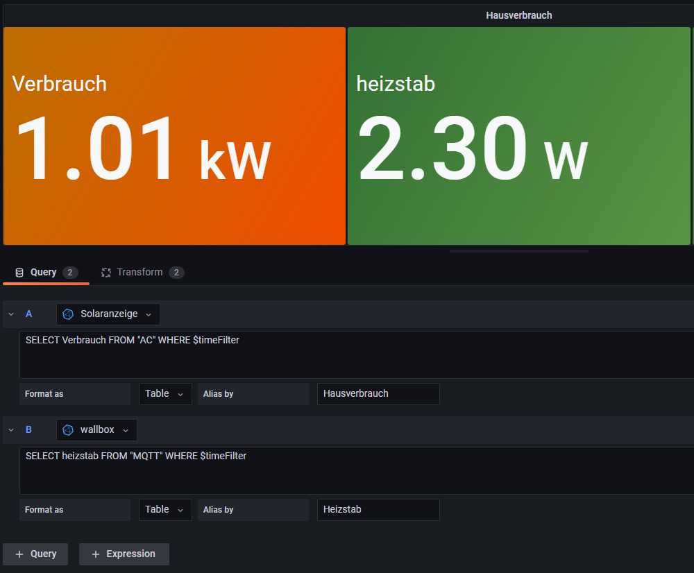 Sobald ich Werte innerhalb einer InfluxDB transformiere funktioniert das "Minus-Rechnen" - sobald ich Datenbankübergreifend agiere funktioniert es nicht mehr. Bei mir wurde allerdings die MQTT Tabelle in der Datenbank wallbox (2.user.config.php) angelegt obwohl ich MQTT über die Datei (1.user.config.php) konfiguriert habe - wie kann ich die MQTT Tabelle in die richtige DB bekommen? Kann es daran liegen? Andere Ideen?