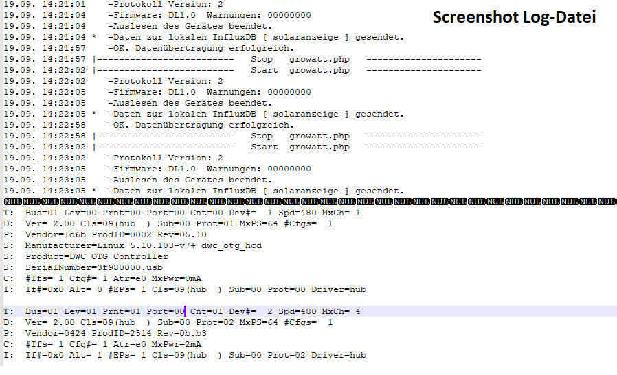 Im Solaranzeige.log erscheinen "wirre" Zeichen, siehe Screenshot.