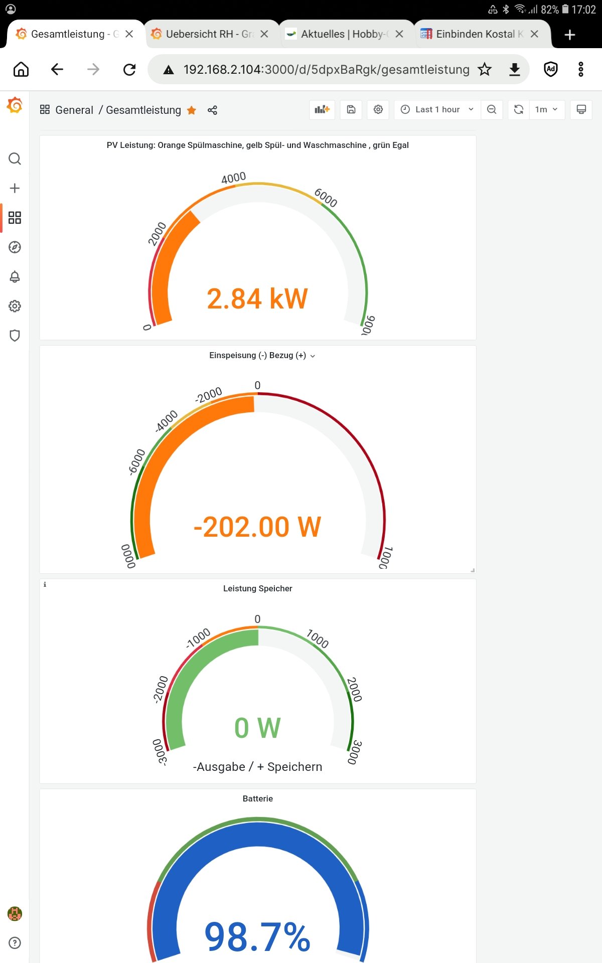 Ich würde gerne auf einen Blick erkennen können, ob ich vielleicht zu viele Verbraucher gleichzeitig betreibe und diese dann zu einem späteren Zeitpunkt einschalten sollte, ohne Energie aus dem Netz beziehen zu müssen.