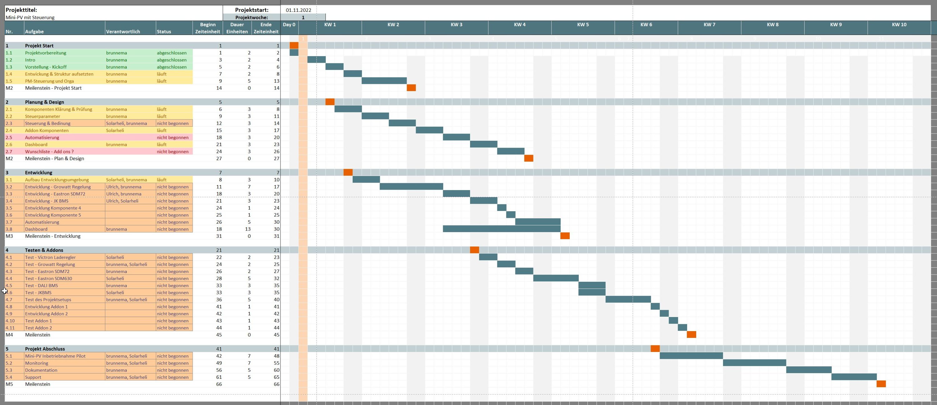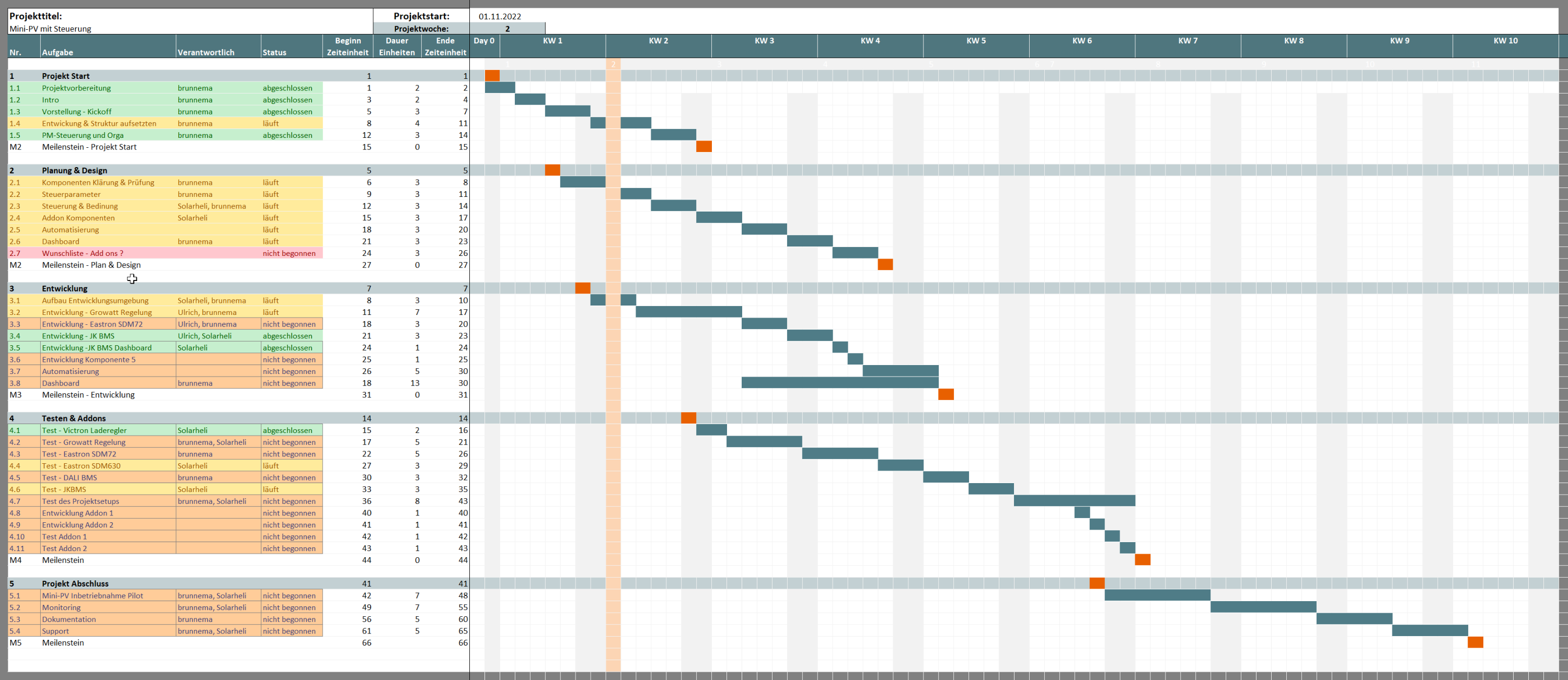 Aus Projektsicht läuft es wirklich gut und ich hätte nicht gedacht, dass die Fortschritte auch so schnell und Effizient voranschreiten – zu aller Erst herzlichen Dank an Solarheli und Ulrich für die tatkräftige Unterstützung!