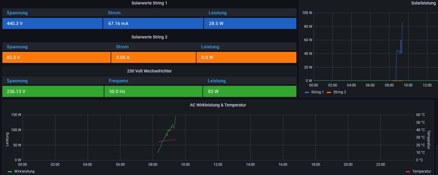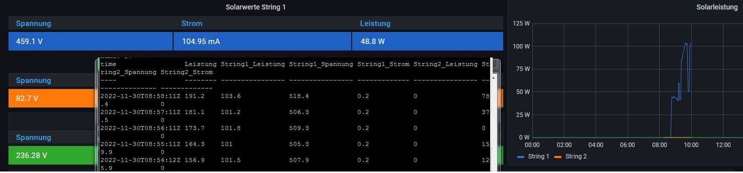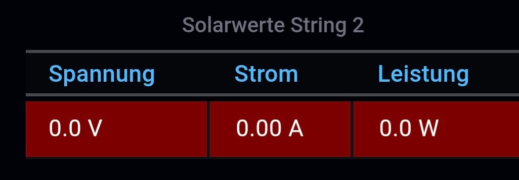 Kann es sein, dass dein Gerät 2 PV - Strings hat? Zu sehen sind nur die Werte von einem String. Da fehlt wohl was in deinem Dashboard.