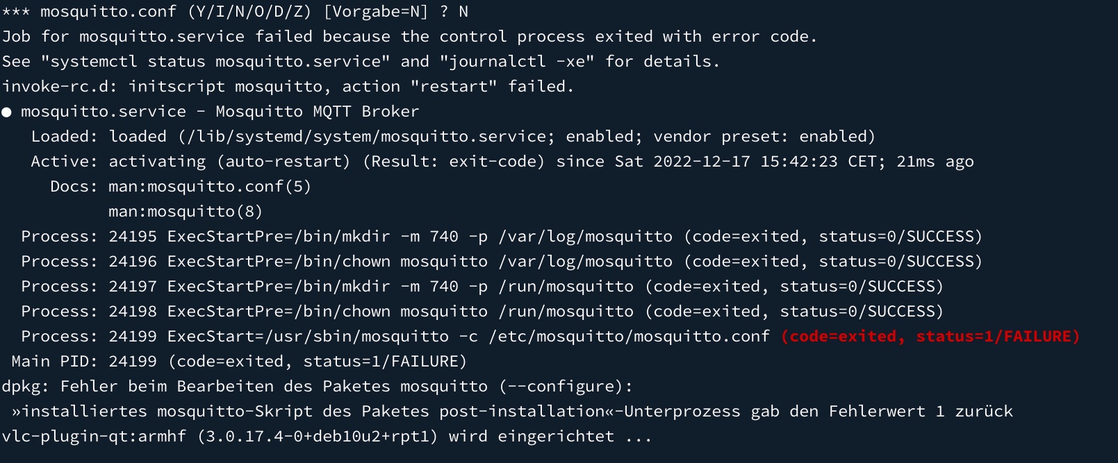 Während des Updates wurde ich gefragt, ob ich die mosquitto.conf überschreiben möchte, was ich verneint habe.