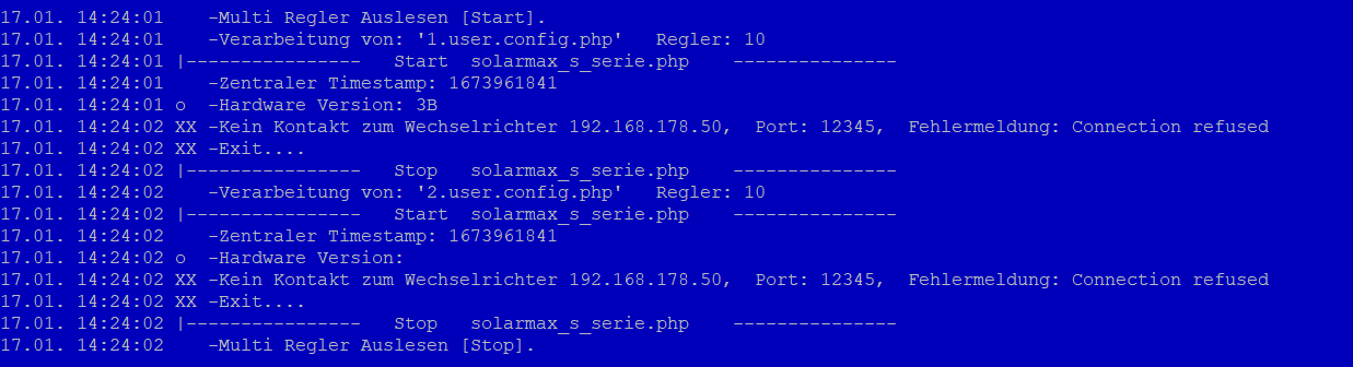 Kein Kontakt zum Wechselrichter, Fehlermeldung: Connection refused...Exit